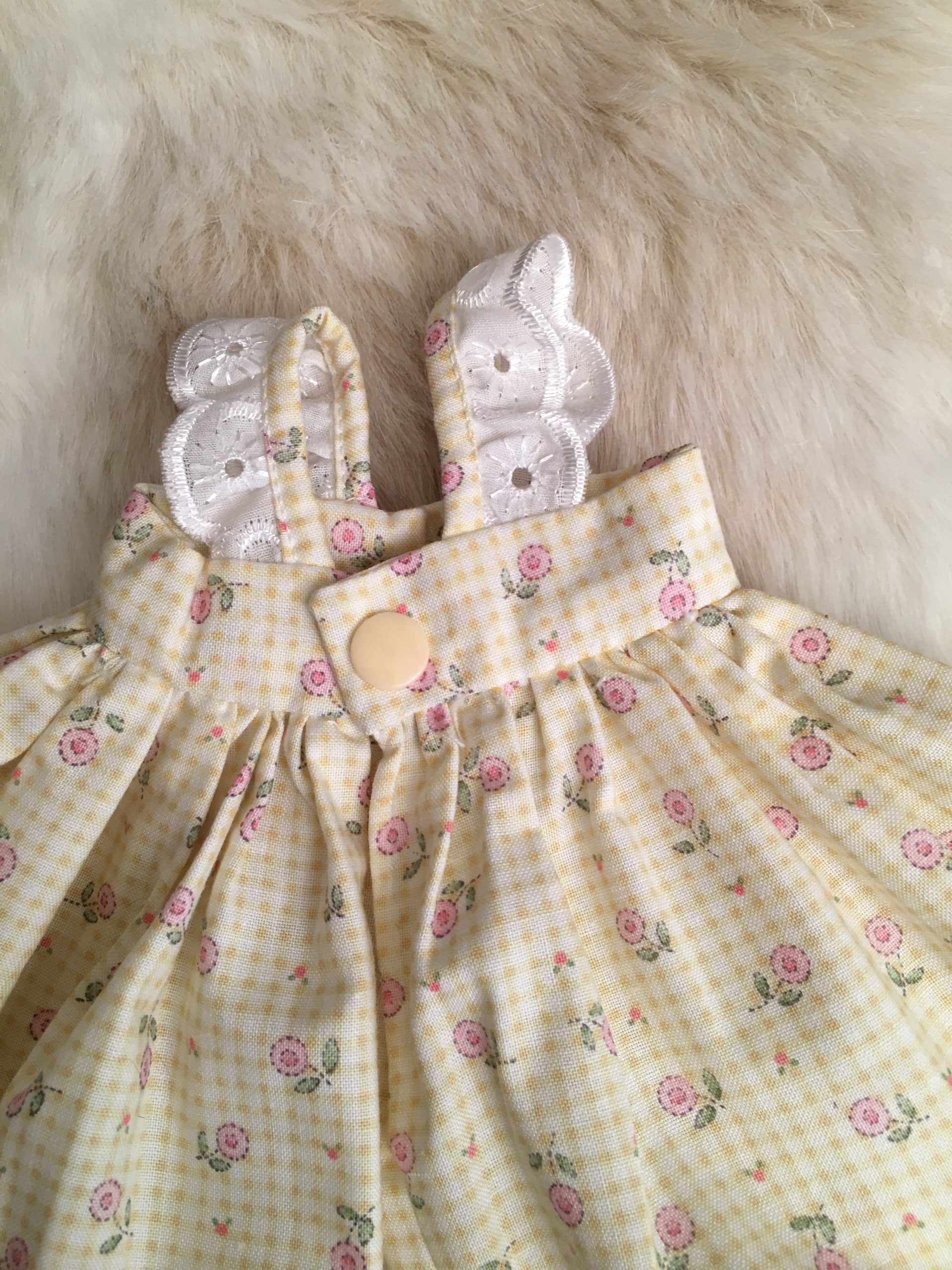 A unique, one‑of‑a‑kind summer dress for Sasha, crafted in a pretty floral poly‑cotton and finished with delicate lace trimming along the shoulders and hem. Light, breezy, and perfect for warm days, this charming dress fastens neatly at the back with a matching popper, adding a simple yet thoughtful finishing touch.