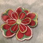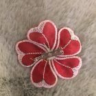 This beautiful organza lace flower is created with layers of sheer fabric and detailed stitching in variegated thread, giving each petal a unique blend of colour. Light, airy, and full of character, it fastens with a brooch pin so you can easily adorn jackets, scarves, bags, or hats with a handmade flourish.